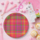 Tutti Frutti PLAID-PAPER PARTY PLATES-An allover background plaid pattern. This design coordinates with other Tutti Frutti Patterns/collection in my store gallery. A full collection of mix and match tutti frutti patterns created with bold, bright colours. The colours include: neon, purple; red, pink; orange and yellow. Young girls will love these crazy colourful designs. Mix and match from the different patterns for a complete coordinated theme. Coordinating solids, polka dots and chevrons are available as well. Choose any style or quantity of Zazzle paper party plates.