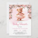 Tutu ballerina girl teddy bear dusty pink roses baby shower invitation,