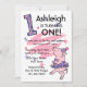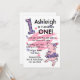 Celebrate your baby girl's first birthday with these adorable custom party invitations featuring a pink piggy dressed in a purple polka dotted tutu and party hat, a big polka dotted number one and fun background. Personalise it just the way you want it. Coordinated postage stamps, mugs, stickers and baby T-shirts also available. PinkInkArt original!