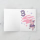 Celebrate your little girl's third birthday with this adorable design featuring a pink piggy dressed in a purple polka dotted tutu and party hat, a big polka dotted number three and fun background. Text says LET'S PARTY, IT'S MY BIRTHDAY. On baby and kid's T-shirts, magnets, stickers, personalised birthday party invitations, greeting cards, mugs and more! PinkInkArt original!