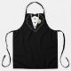 Elegant, and a little bit funny, black and white tuxedo apron with a white flower in the lapel for the guy, or girl who loves to look extra when cooking, baking and/or grilling. Fun novelty Father's Day gift for dad, or father figure In your life who always man's the grill at the family barbecue. Also could be a cute bridal shower gift for the groom that cooks. Make it a couple's gift with our matching bridal gown apron. Why not personalised wedding tuxedo aprons for grooms and ushers?