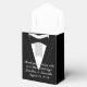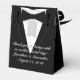 Tuxedo Black Bowtie Tent Style Favour Box with Ribbon (Black). Black tie/ tuxedo gift bag with fully customisable texts "Thank you for being with us on this special day! Jonathan & Samantha August 21, 2018". These stylish bowtie tuxedo party gift bags are fully customisable, add your personal texts and images! Stylish personalised bags for wedding parties, anniversaries and receptions, holiday or New Year party or other special festive events!