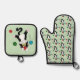 Tuxedo Black White Christmas Cat Oven Mitt & Pot Holder Set