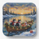 Tuxedo Cat Christmas Boat Holiday Paper Plate
