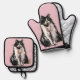 Tuxedo Cat Cute Cats Black White Pastel Pink Oven Mitt & Pot Holder Set