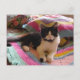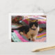 Tuxedo Cat Cute with Pretty Crochet Rug Postcard