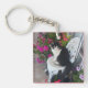 Tuxedo Cat Cute with Pretty Flowers Black Cats Key Ring