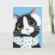 A black and white tuxedo cat wears a pair of ear muffs and a white spotty scarf in this cute kitty Christmas card . Inside reads "Wishing you a Purrfect Christmas!". Can be personalised or deleted for a blank card. Artwork © Lisa Marie Robinson. All Rights Reserved, It is illegal to use or duplicate this, or any of our images, without written permission.