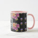 Tuxedo Cat Funny Happy Dance Birthday Mug Roses in a Black Background. A photo and floral design. A must for any cat lover!