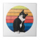 Tuxedo Cat Gift Retro Colours for Animal Lovers Ceramic Tile