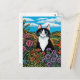 Tuxedo Cat in a Flower Field Meadow Postcard