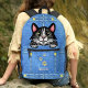 Tuxedo Cat in Faux Denim Pocket with Custom Name Printed Backpack