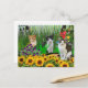 This flower garden postcard features a Tuxedo (black and white) cat, orange tabby and a white cat in a lovely flower garden. This garden was created from one of my collage art designs. Each plant, flower, grass, and cats were cut out from a photograph then handset to create the postcard design. Buy this darling cat postcard for yourself or buy two or more as a gift for another cat lover. I like to buy an assortment of cat postcards to give to the ladies that help me take care of the feral and stray cats in my neighbourhood. People who like cats love collage art cards because they are unique and beautiful.