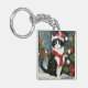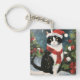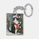 Tuxedo Cat in Snow Christmas Key Ring