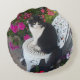 Tuxedo Cat Maroon Dark Pink Cats and Flowers Round Cushion