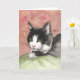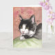Tuxedo Cat Note Card Black White Cat Pink Green