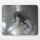 Tuxedo cat peering through branches mouse pad