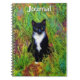 The front of this journal spiral notebook features my original photograph of a black and white Tuxedo cat. The image was processed in a pop-art style for an artsy flair. The word 'Journal' is on the front; however, you can change the words to personalise it as you desire.