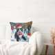 Tuxedo Cat Running in Snow with Christmas Hat Cushion