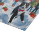 Tuxedo Cat Running in Snow with Christmas Hat Cutting Board