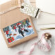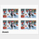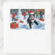 Tuxedo Cat Running in Snow with Christmas Hat Rectangular Sticker