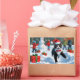 A playful Tuxedo Cat runs through the snowy winter scene, wearing a festive red Christmas hat. This charming design highlights the breed’s distinctive black and white coat, curious nature, and lively spirit while capturing the warmth and joy of the holiday season. A delightful winter moment full of festive cheer.