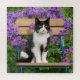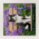 Tuxedo cat sitting on a garden chair with flowers jigsaw puzzle