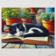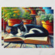 Scrapbook paper featuring a tuxedo cat sleeping on a book in a garden setting. Perfect for adding a touch of whimsical charm and serene beauty to your scrapbooking and craft projects.