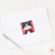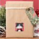 This charming illustration features a blue eyed tuxedo cat with striking black-and-white fur, adorned with a dapper red bow tie.