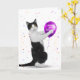 Black and white cat with purple balloon and confetti on white background for 41st birthday.