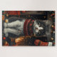 Tuxedo Cat With Christmas Gifts Fireplace Jigsaw Puzzle