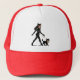 She struts her stuff in a sassy catsuit, complete with kitty ears, as she walks her grumpy tuxedo cat on a leash in this comic themed graphic art. Show off your love for cats, while poking fun at the cat lady moniker, with this humorous hat. Meow! | This design is available on multiple hat styles. Choose a trucker, dad, snapback, or bucket hat from the Product Style menu above.