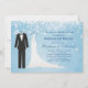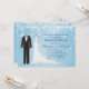 This modern invitation features a groom's black tuxedo and white bride's wedding dress on a blue background. with snowflakes. You can use this invite for wedding announcements, engagement party invitations, save the date, rehearsal dinner or wedding luncheon invitations.
