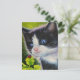 Tuxedo Kitten & Ladybug Watercolor Art Postcard