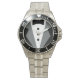 Has heft and feel of expensive stainless steel quartz watches. Good band with safety catch. I removed links, which is easy because engraved arrows show direction to push the linking pins. As always by this seller, the image (a railroad logo) is a perfect reproduction of my emailed image, and is precisely spaced and aligned.