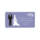 Black tuxedo, white wedding gown and flowers on a light violet background Address Label