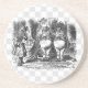 Round sandstone coaster with a vintage Alice in Wonderland image of Alice meeting Tweedle Dum and Tweedle Dee on a grey and white chequerboard. See matching paper coaster and paper cocktail napkin. See the entire Wonderland Coaster collection in the FOOD/BEV | Coasters section.