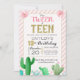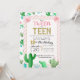 Your tween is turning 13! This invitation features watercolor cacti and pink flowers with gold glitter accents.