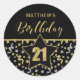 Twenty First Birthday Black and Gold Confetti Classic Round Sticker