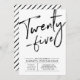 Celebrate your special day with this simple stylish 25th birthday party invitation. This design features chic brush script "Twenty Five" with a clean layout in black & white colour combo. More mileston birthday designs available at my shop BaraBomDesign.