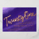 Twenty one 21st birthday party bold art brush wash in deep purple blue with a rose gold foil text or your own foil colour invite. Personalise this 21st birthday party script art milestone birthday invitation with your own birthday party event details, and your own photo on the reverse. Other years colours and matching items are available. © Original design by Sarah Trett for www.mylittleeden.com on Zazzle.