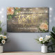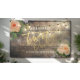 21st Birthday Party Decor Welcome Banner Templates - Faux Gold Foil Script with Peach White Roses Floral and String Lights on Rustic Wood Background.