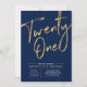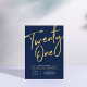Twenty one | Blue & Gold Chic 21st Birthday Party Invitation