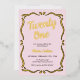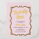 Twenty One Gold Script Blush Pink 21st Birthday Foil Invitation features a simple black typography design with a luxurious foiled hand-drawn frame on a blush pink background, creating a modern and sophisticated look. The foiled script "twenty one" and personalised name add an elegant and stylish touch.