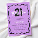 Twenty One Purple Black Elegant Chic 21st Birthday Invitation features a simple black typography design with a dark purple background and a hand-drawn black wavy border for a modern touch. The white script text "twenty one" and personalised name add elegance, while the bold black number "21" makes a statement.
