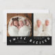 Twice Blessed Typography Black Birth Announcement