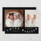 Whimsical birth announcement card featuring typography text that says "twice blessed" at the bottom with two photos on the front. You can add a 3rd picture on the back along with the birth stats and message. The background is black.