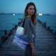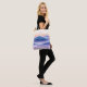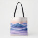 LUVINK Modern Coastal Luxury. Twilight Drift features layered bands of lavender-dusk and deep-teal waves with subtle peach-glow highlights over a sand-toned backdrop. The rhythmic swells evoke the peaceful pull of evening tides. This elegant tote is perfect for beach days, market runs, or adding an artful coastal touch to your daily carry.
