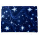 NIght sky filled with glowing stars and snowflakes in various sizes and styles. Set against a deep blue backdrop, the bright white and icy blue elements create a striking contrast. Wispy, wave-like light trails weave through the composition, adding motion and depth. The overall effect is magical and wintery—evoking a sense of wonder, serenity, and seasonal charm.