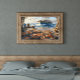1. This stunning painting captures a picturesque scene of crabs being sorted on a boat by a group of fishermen as the sun sets, creating a warm and inviting glow over the ocean.